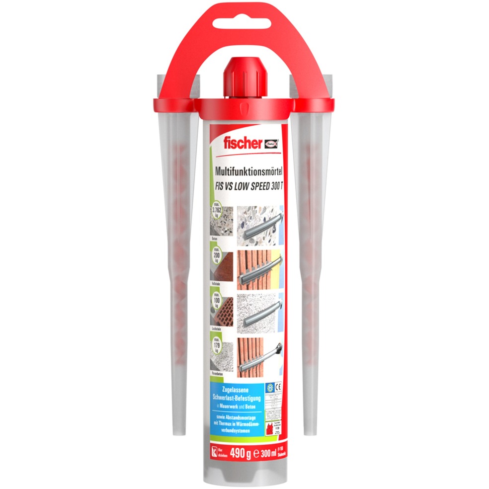 La malta per iniezione fischer FIS VS è una malta per iniezione 2K basata su vinilestere ibrido. Il tempo di polimerizzazione prolungato impedisce la polimerizzazione prematura anche a temperature estive, rendendo la malta per iniezione ideale anche per grandi profondità di trivellazione. Fis VS è approvato in una varietà di sistemi e offre quindi un''elevata sicurezza per quasi tutte le applicazioni. Una gamma di accessori ampia e perfettamente coordinata aumenta ancora di più la grande flessibilità del FIS VS. Le cartucce di iniezione possono essere lavorate rapidamente e senza sforzo con le presse fischer, ma possono anche essere lavorate senza strumenti speciali con dispositivi di pressatura in silicone stabili disponibili in commercio. Le cartucce aperte possono essere riutilizzate se necessario cambiando il miscelatore statico.