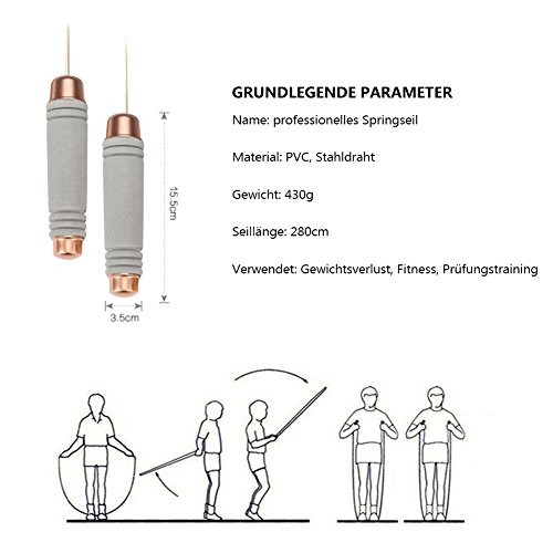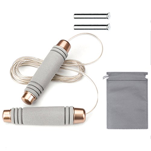 Di alta qualità: Cavo in acciaio e PVC, lunghezza 2,8 m, con manico in schiuma NBR e pesi.
