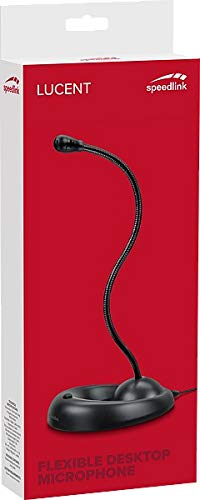 Speedlink LUCENT Flexible Desktop Microphone, Microfono da Tavolo per PC, 3.5mm, On/Off per Esclusione Microfono, Nero