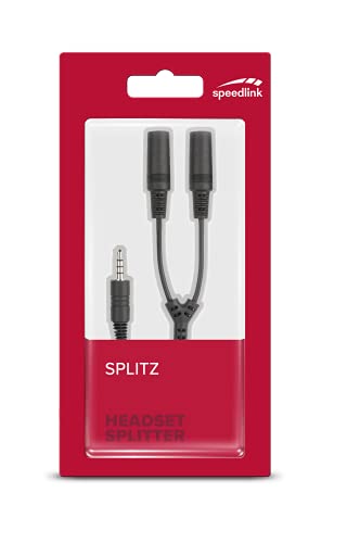 Speedlink SPLITZ Headset Splitter - Sdoppiatore auricolare da 3,5mm a 2 x 3,5mm per collegare due cuffie o auricolari a un dispositivo audio portatile, nero