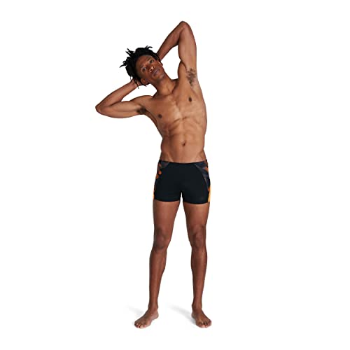 Speedo Eco Endurance+ Splice Aquashort da Uomo, Nero/Papaya Punch/Carboncino, 38 (IT 52)
