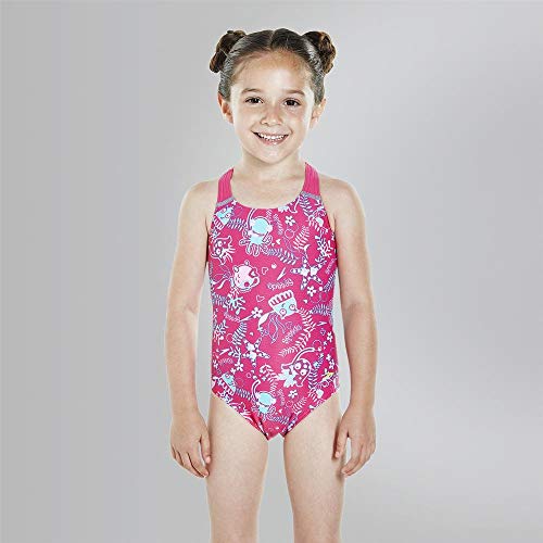 Speedo Seasquad Allover 1 Piece, Costume Bimba 0-24, Rosa (Vegas Pink Splash/Bali Blue), 9-12 Mesi