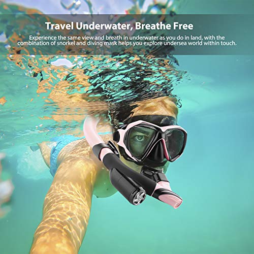 Speedsporting Set Snorkeling Scuba Maschera Snorkel Set Anti-Fog Maschera Snorkeling con Panoramica a 180 Gradi e Boccaglio Snorkel, Kit Snorkeling Professionale per Adulti (Rosa)
