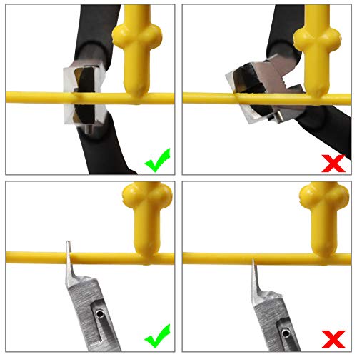 Design: con un unico bordo e la punta del bordo è di soli 0 cm, la lama sottile può essere vicina alla parte per tagliare in modo pulito, riducendo il tempo di macinazione e la resistenza della taglio. La vite limite può evitare una pressione eccessiva e danni alla mascella. L'azione a molla riduce l'affaticamento della mano e del polso per un facile funzionamento con una sola mano. Maniglie di smorzamento Plastisol per antiscivolo. Tutte le pinze sono rifinite con superficie lucida.