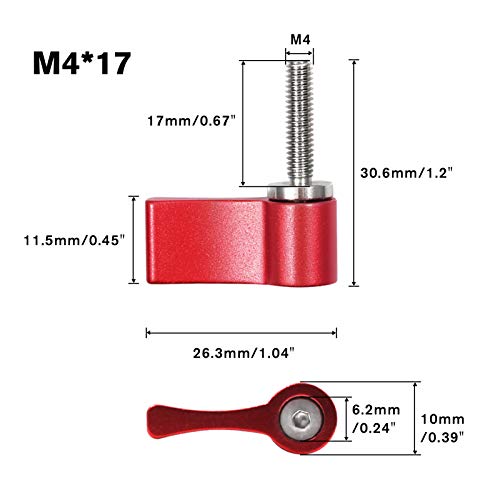 SPEEDWOX 10 pomelli rotanti maschio filettati M4 17 mm a vite regolabile a leva, manopola rotante con ala singola, lega di alluminio rossa