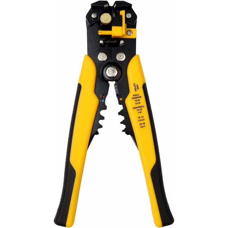 Materiale - Realizzato in acciaio di alta qualità, l'acciaio è realizzato mediante trattamento termico, lucidatura e processo di ossidazione nera, con lunga durata, buona durezza, forte resistenza alla trazione e spelatura del filo. Il peso di questo spelafili è di circa 320g e il peso è facile da trasportare. 【Funzione】Puoi facilmente spellare, tagliare e crimpare i terminali. Basta fissare il filo tra i morsetti in acciaio e stringere la maniglia per ottenere una spellatura perfetta.Il filo può essere spelato nell'intervallo di 10-24 AWG (0,2-6,0 mm²). Inoltre, la spellafili automatica può anche tagliare fili di rame, fili e fili di alluminio. È possibile utilizzare questa pinza per crimpare terminali isolati 10-22AWG (0,5-6,0 mm²). 【Comodo da usare】 L'impugnatura adotta una guaina morbida a doppia fila, che non è solo antiscivolo, ma anche più ergonomica, lavorazione eccellente, presa migliore, comoda da usare, adatta per lavori a lungo termine termine. 【Design】È possibile regolare