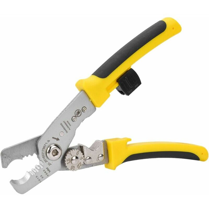 Informazioni su questo articolo Per tagliare, spelare e aprire il filo (campo di apertura: cavo a 3 e 4 conduttori da 1-6 mm², tagliare e sbucciare alla dimensione richiesta regolando la manopola, questo il prodotto può essere sostituito con due lame). Acciaio legato, trattamento termico generale, elevata durezza, bordo affilato, forte forza di taglio. Design accurato del foro di spelatura, incisione del filo è tagliato con cura durante la rimozione e non è facile danneggiare il nucleo.Arco in plastica bicolore, presa comoda, lavoro a lungo termine senza fatica. Dotato di un blocco di sicurezza, facile da trasportare e riporre .