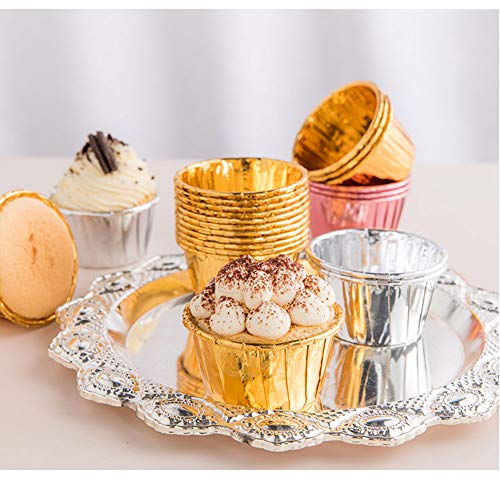 SPESH 50 Pz Stampi per Cupcake Pirottini in Carta Stampi per Muffin Usa e Getta Tazze di Cottura per Muffin Cupcake(Oro-Rosa)