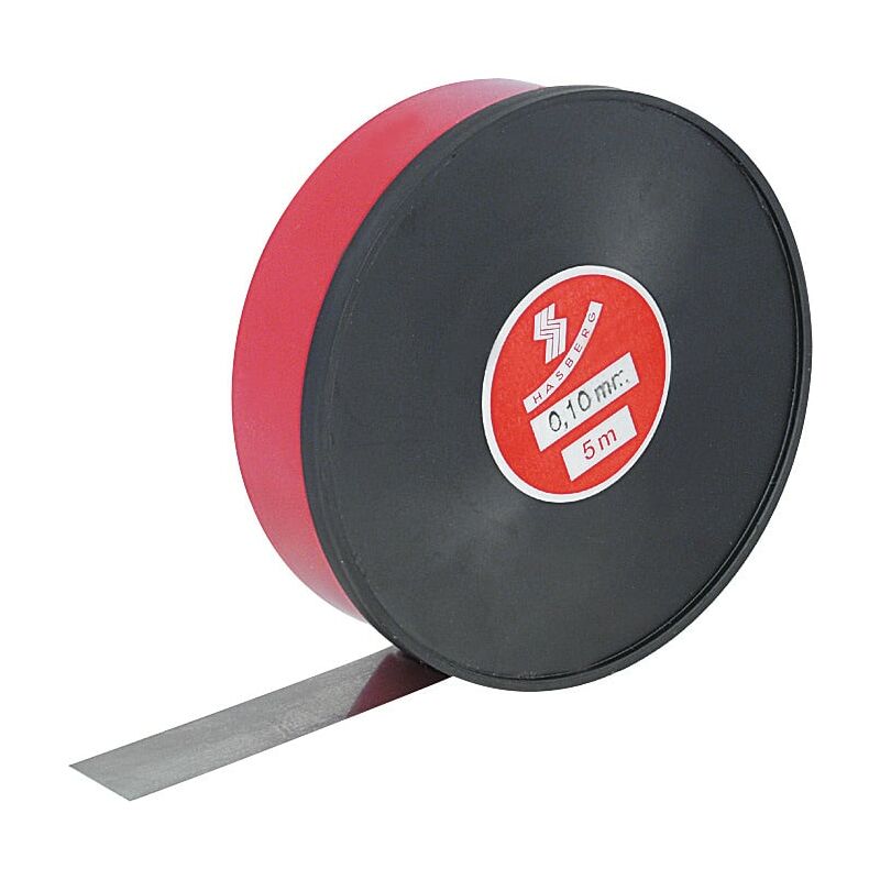 Nastro in acciaio con funzione di spessimetro rigido, laminato a freddo, con elevata precisione di planarità. Lo spessore del nastro (a partire dalla dimensione 0,02) è marcato in modo indelebile (eccezione: n. art. 478502 a partire da Dim. 0,08). Contenuto in una pratica scatola, estraibile come un flessometro. È possibile tagliare la lunghezza desiderata dai 5 o 10 m di nastro. Acciaio C − acciaio al carbonio, materiale n. 1.1274, laminato a freddo, temprato, superficie lucida (Dim. 0,01 e 0,02 inossidabili). Uso: Nella realizzazione di attrezzi e dispositivi per mettere a punto le componenti delle macchine, come pellicola di supporto durante l'allineamento dei pezzi, per la misura di tolleranze di qualsiasi tipo, per il controllo di accoppiamenti e guide, per la regolazione di rulli inchiostratori e rulli compressori. Dati tecnici Materiale Acciaio C Larghezza rotolo mm 25 Lunghezza rotolo m 5 Tipo di prodotto Nastro per spessimetri Limite di errore, µm ±5 Norma Norma interna