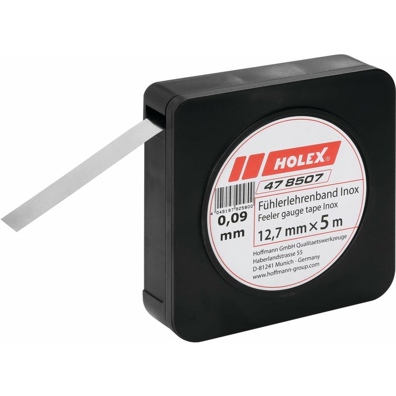 DescrizioneEsecuzione:Nastro in acciaio con funzione di spessimetro rigido, laminato a freddo, con elevata precisione di planarità. Lo spessore del nastro, a partire dalla Dimensione 0,02, è marcato in modo indelebile (eccezione n. art.478502 a partire da Dim. 0,08).Contenuto in pratica scatola, estraibile come un flessometro. È possibile tagliare la lunghezza desiderata dai 5 o 10m di nastro.Inossidabile − acciaio legato resistente alla ruggine e agli acidi, materiale n. art 1.4310 (o 1.4301 spessore 0,005−0,05 mm), laminato a freddo, rigido, superficie lucida.Uso:Nella realizzazione di attrezzi e dispositivi per mettere a punto le componenti delle macchine, come pellicola di supporto durante l'allineamento dei pezzi, per la misura di tolleranze di qualsiasi tipo, per il controllo di accoppiamenti e guide, per la regolazione di rulli inchiostratori e rulli compressori.Dati tenici Limite d'errore ±4 µm Materiale Acciaio inossidabile Materiale Acciaio legato, INOX Rotolo lunghezza 5 m