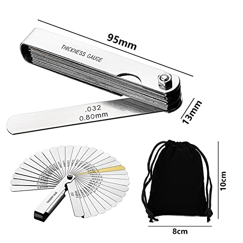 Spessimetro, Spessimetro Pieghevole, Spessimetro 32 Lame, 32 Lame Strumento di Misurazione Dello Spessimetro, 0.04-0.88mm(Imetrica e Imperiale) Per Misurare Larghezza, Spessore, Dimensioni