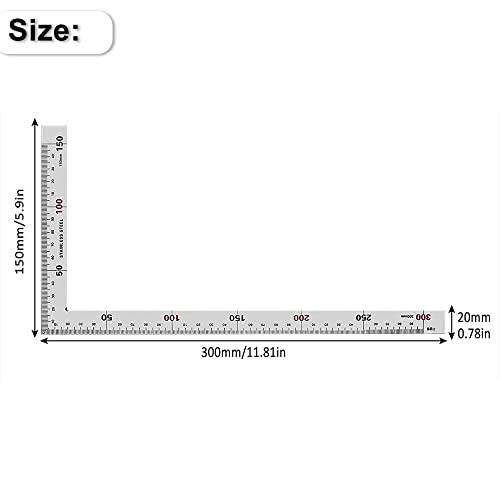 150 × 300 mm, Spessore 2mm, Righello Forma di L a Doppia, 90 Gradi Quadrato Acciaio Righello, Righello Quadrato a L, Righello a L in Acciaio Inossidabile, Righello a Forma di L, per Misurazione