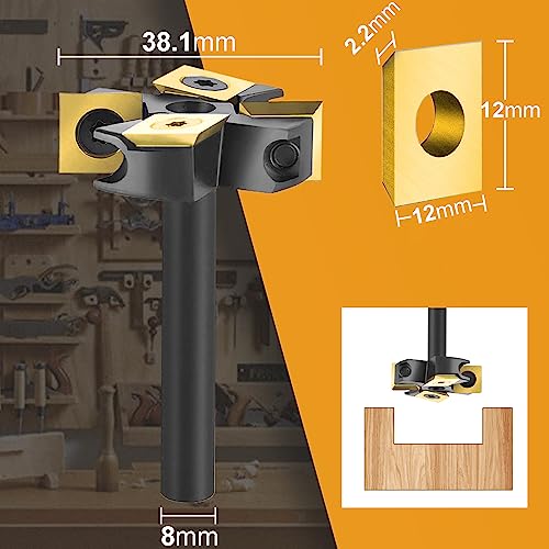SpeTool Fresa per Spianare Fresa per Legno Gambo 8mm Fresa CNC con 2+2 Inserti in Carburo di Tungsteno Fresa a Spianare Fresatrice Verticale Legno Diametro di Taglio 38,1mm Rivestimento ATS Fraiser