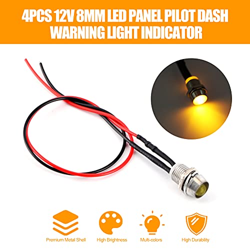 4 Pcs 12v LED Spia di segnalazione Spia Car Van Boat Indicatore di direzione Pilot Dash Bulbs Lampada direzionale, 8mm(Yellow)