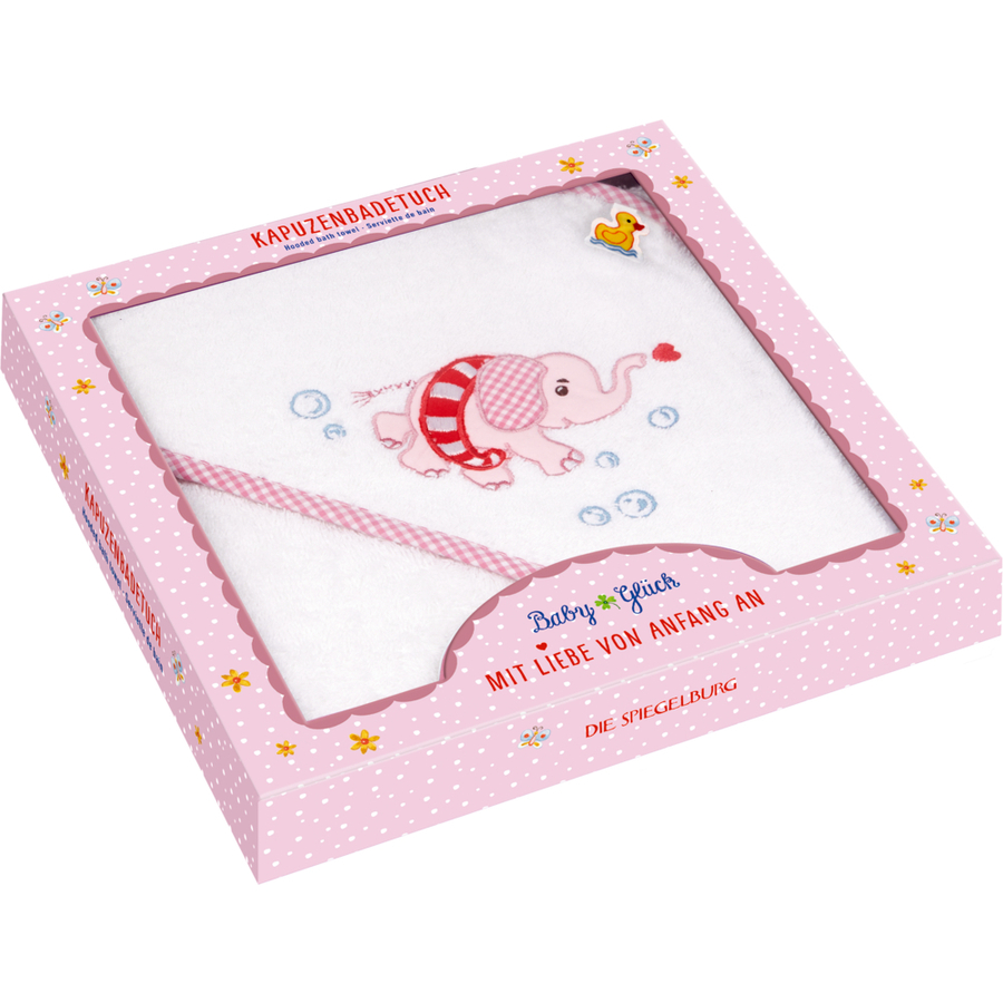 Dettagli del prodotto: Età: da 0 mesi Con questo asciugamano della collezione BabyGlück, il primo bagnetto del bambino sarà un vero piacere! Appena uscito dal bagno, il piccolo prodigio viene avvolto nel morbido asciugamano con cappuccio in cotone e asciugato delicatamente da mamma o papà. Il telo da bagno è dotato di un cappuccio con fodera in morbido jersey e di un pratico passante per essere appeso in bagno. Con un grazioso ricamo rosa e un'applicazione mobile. L'asciugamano viene fornito in una confezione esterna dal design accattivante: il regalo ideale per una nascita o un battesimo! Dimensioni e peso: Dimensioni (lunghezza x larghezza x altezza): 80 x 80 cm Peso: circa 0,4 kg Materiale e cura: Materiale: 100% cotone Cura: Lavare a 40°C, non candeggiare, non asciugare, non stirare, nessun trattamento professionale per i tessuti (serie di simboli).