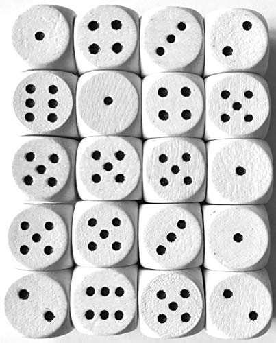 Spieltz Mini cubo in legno per giochi da tavolo 12 mm, D6/W6, Made in Germany (20 dadi, bianco)