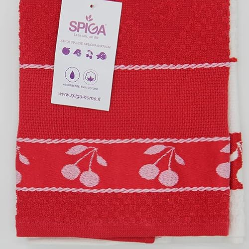 Spiga - Set strofinacci in formato maxi 50x70 cm. Strofinacci da cucina in Spugna Teddy. Super morbidi e assorbenti. Strofinacci per cucina con ricami con frutta. Diversi colori. Canovacci (Ciliegie)