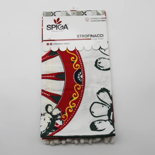 SPIGA - Set da 2 strofinacci Stile Siciliano. Strofinacci in Cotone Set di canovacci Cucina con design siciliano - Strofinacci in 100% cotone 50x70cm - CANOVACCI asciugapiatti e stoviglie (Carretto)