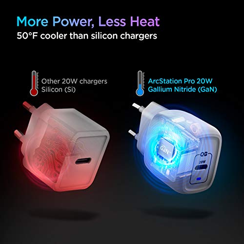 Tecnologia GaN: sostituendo il chipset in silicone con nitruro di gallio, consente ad ArcStation Pro di funzionare in modo più efficiente e generare meno calore rispetto al caricabatterie da parete standard