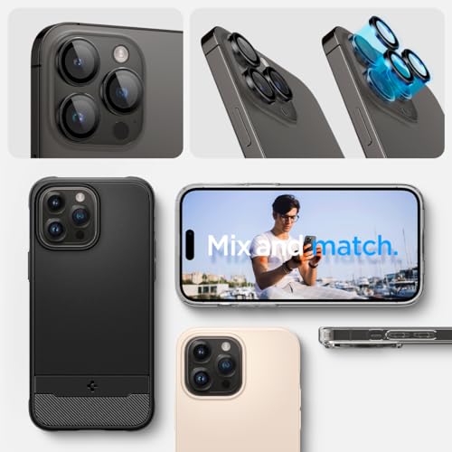 Spigen Glas.tR EZ Fit Optik Pro Protezione Fotocamera compatibile con iPhone 15 Pro / 15 Pro Max, iPhone 14 Pro / 14 Pro Max, 2 Pezzi, Nero, Anello Individuale, Durezza 9H Pellicola prottetiva