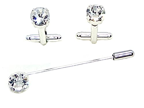 Spilla per cravatta e gemelli per camicia con cristalli rotondi spille da uomo per plastron e ascot made in Italy