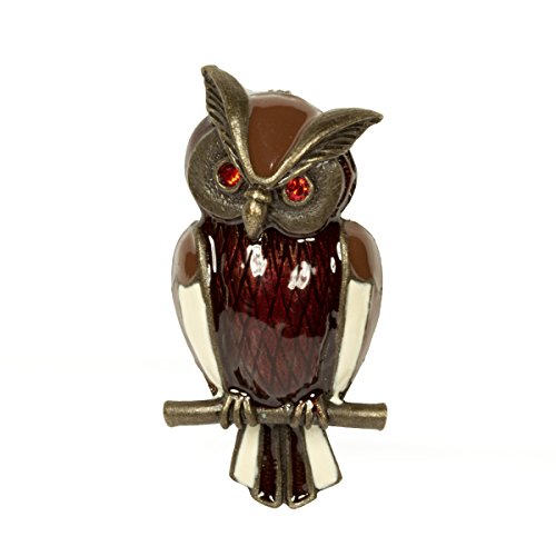 Spilla gufo rosso strass smaltata per capotto giacca vestito fazzoletto da collo blusa borsa dipinto a mano ottone