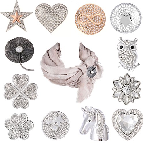 Spilla magnetica, in argento, con strass, per sciarpe, borse, stivali e abbigliamento, colore antracite, di diverse forme: lumaca, gufo, cuore, stella e base metal, colore: argento,