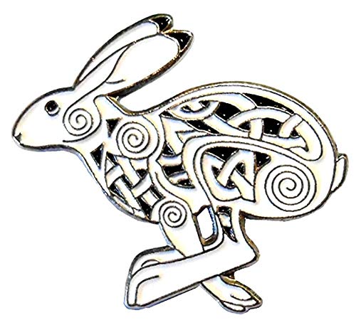 Spilla in metallo smaltato con lepre celtica Wiccan Occulto coniglio pagano mito runa magica (spilla da 30 mm)