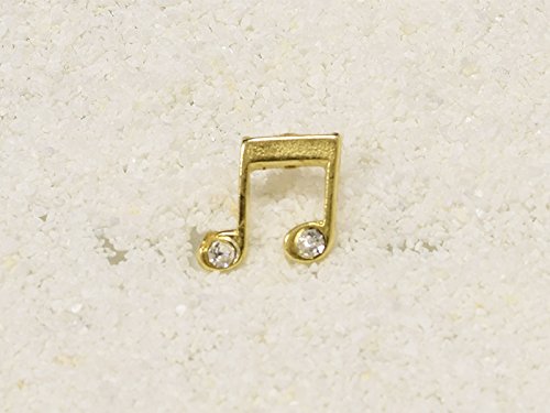 Spilla musicale in peltro dorato 18 carati, raffigurante una nota doppia con ZIRCONI