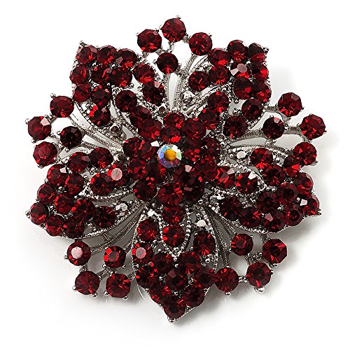 Spilla in stile vittoriano a forma di fiore (argento e bordeaux)