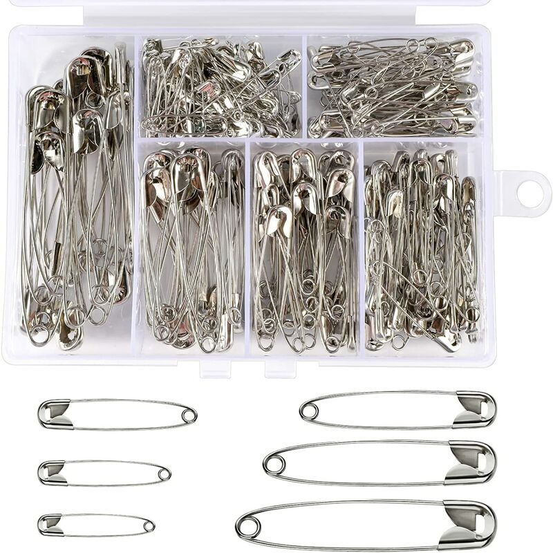 Materiale resistente - Realizzato in acciaio nichelato antiruggine, il diametro dell'ago è spesso, sicuro e durevole, non devi preoccuparti di piegarsi o arrugginire, l'estremità dell'ago mantiene l'ago bloccato, coprendo il mancia affilato e proteggendo le dita. 【Imballaggio super conveniente】Disponibile in una varietà di dimensioni e quantità per soddisfare tutte le tue esigenze. 【FACILE DA CONSERVARE】 Queste spille da balia sono dotate di una custodia trasparente per una facile conservazione e una facile separazione di 6 spille di diverse dimensioni. Le spille d'argento sono un'ottima decorazione per i tuoi lavori manuali. 【Buon aiuto per cucire】Può penetrare facilmente nel tessuto senza danneggiare i vestiti e può essere fissato saldamente ai vestiti. Facile da riparare e smontare, è un valido aiuto per stilisti e sarti. 【Ampio utilizzo】Può essere utilizzato per molti articoli come vestiti, trapunte, calzini, coperte, pannolini per bambini, gioielli e artigianato, maglioni di