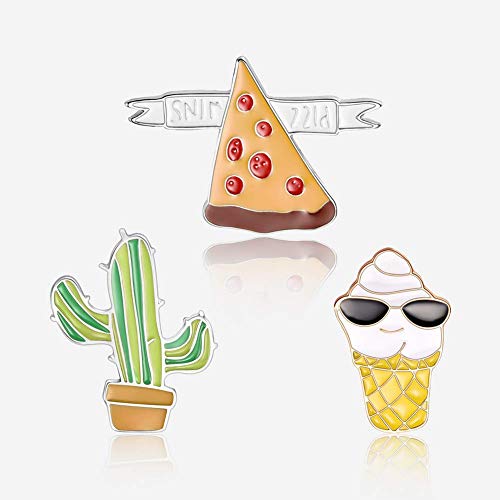 Set di 3 spille per cartoni animati Pizza Cactus, spille di crema con retro e spille per vestiti, di alta qualità, portatile e utile