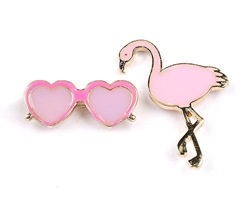 Spille in metallo, 5 pezzi, set con palma, cocktail, occhiali da sole, fenicottero