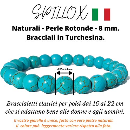 SPILLOX Bracciale Uomo Donna Elastico Da Vere Pietre Preziose Naturali Di 8mm Reiki Idea Regalo Di Compleanno Originale Diffusore Di Energia Guarigione Equilibrio (TURCHESE)
