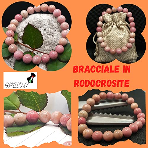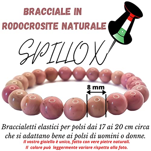 SPILLOX Bracciale Uomo Donna Elastico Da Vere Pietre Preziose Naturali Di 8mm Reiki Idea Regalo Di Compleanno Originale Diffusore Di Energia Guarigione Equilibrio (RODOCROSITE)