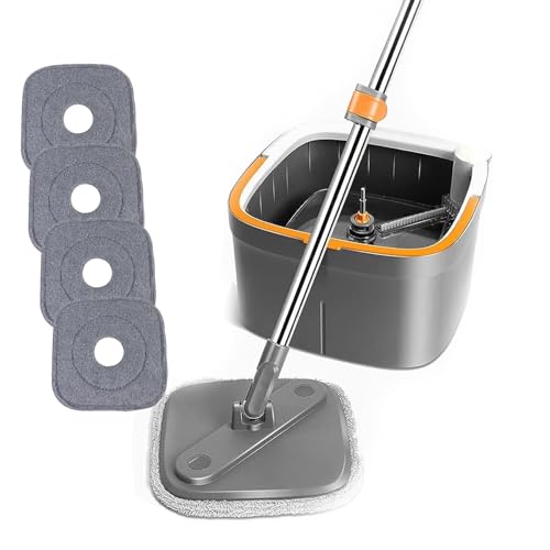 Spin Mop M16, M16 Spin Mop, Self Wash Spin Mop M16, Spin Mop e Secchio con Set di strizzatori, Spin Mop Separato Acqua pulita e sporca, uso bagnato e asciutto (With 4 Pads)