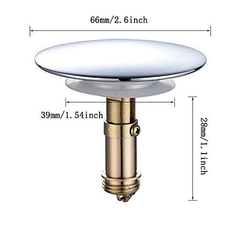 Spina Da Bagno Pop Up Universale Pop Up Valvola Scarico Tappo per Lavello Tappo per Vasca Regolabile Da 66 Mm Con Doppio Arresto, Qualità Premium In Rame Massiccio, per Lavabo, Doccia, Vasca Da Bagno