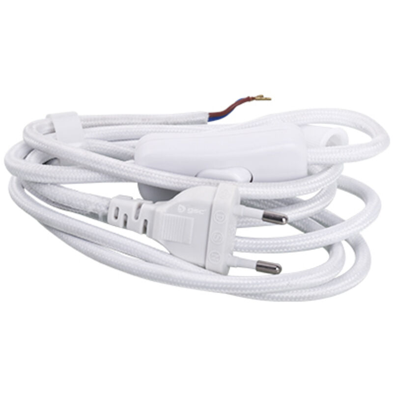 Cavo tessile decorativo per lampade o piccoli elettrodomestici Cavo da 1,5 metri Il cavo incorpora una spina e un interruttore a gradino Colore bianco