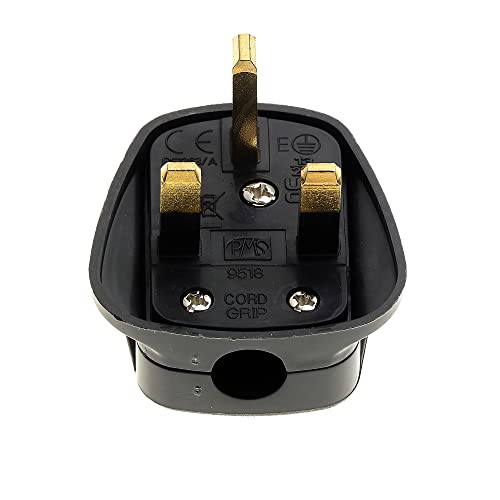 Spina di Rete Britannica da 13A con Fusibile da 13A, Nero - Adattatore di Alimentazione da Viaggio di Tipo G Britannico Standard 240V con Fusibile, Blocco Prese a 3 Pin
