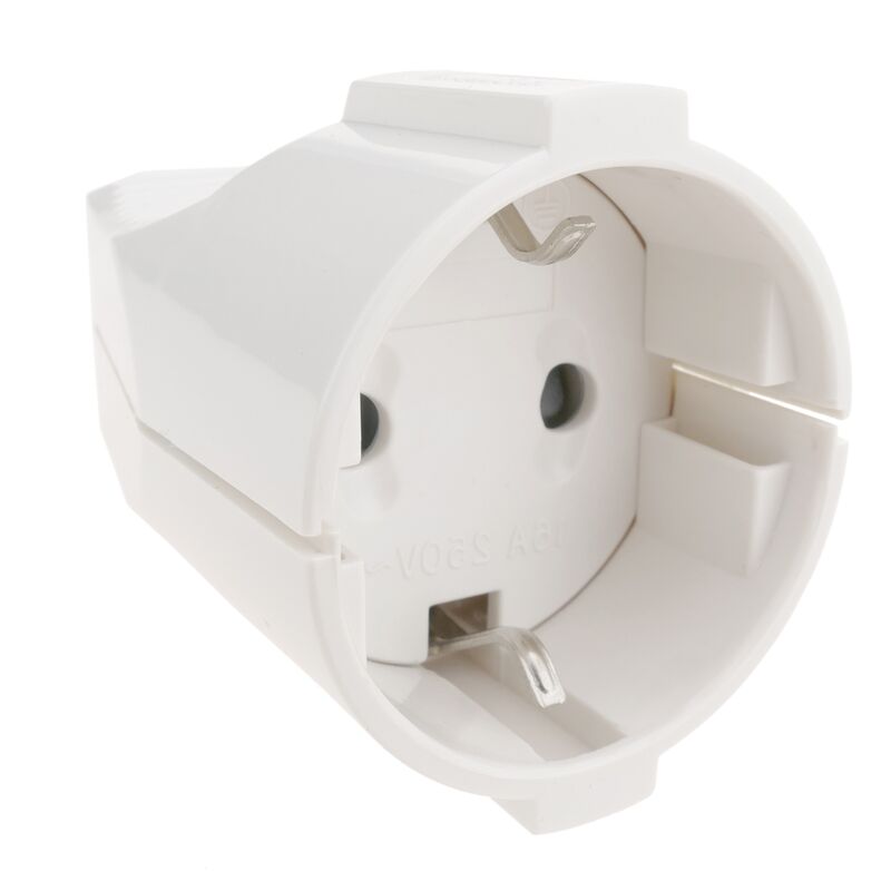 Spina schuko femmina dritta rispetto al cavo, bianca. Perfetto per il montaggio di cavi personalizzati per allungare l'alimentazione. Utile per essere utilizzato nei dispositivi di scuole, uffici, case, fabbriche, negozi, ecc. Caratteristiche del prodotto: DATI TECNICI: Spina bianca dritta con spina schuko femmina con connessione a terra per il montaggio di cavi nuovi o la sostituzione di parti in cattive condizioni. Utile connettore per collegare alla corrente elettrica qualsiasi dispositivo elettronico come computer, televisori, frigoriferi, lavatrici, stereo. INSTALLAZIONE: L'installazione è facile e diretta. Basta collegare un cavo attraverso il foro posteriore dell'articolo e collegare la spina direttamente alla presa elettrica. MATERIALI: Rivestimento realizzato in plastica di alta qualità progettata per resistere al passare del tempo e garantire una durata ottimale del prodotto. ALIMENTAZIONE: La spina funziona con una tensione di 250V e fornisce un carico di 16A. DIMENSIONE