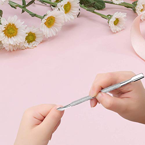 Uno spingitoio a doppia testa con 2 diversi strumenti, ideale per unghie, facile da usare, piatto per spingere, progettare e modellare la cuticola, testa curva per rimuovere la pelle residua e lo sporco sulle unghie.