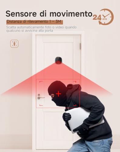 Notifica Automatica - Sensore di movimento 24 H. Distanza di Rilevamento 1/3 M Scatta automaticamente foto o video quando qualcuno si avvicina alla porta