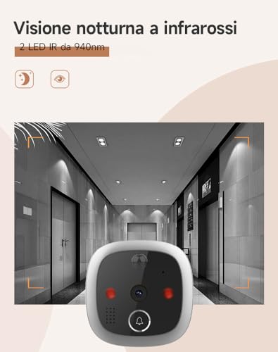 SPIONCINO DIGITALE WIFI SENZA FILI, 4,3" LCD, SENSORE DI MOVIMENTO H.24, FOTO/VIDEO, NERO