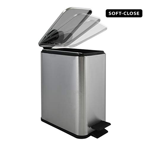 Spirella Pattumiera da bagno da 5 litri, in acciaio inox, con abbassamento automatico e secchio interno Erik, chiusura silenziosa, colore: argento