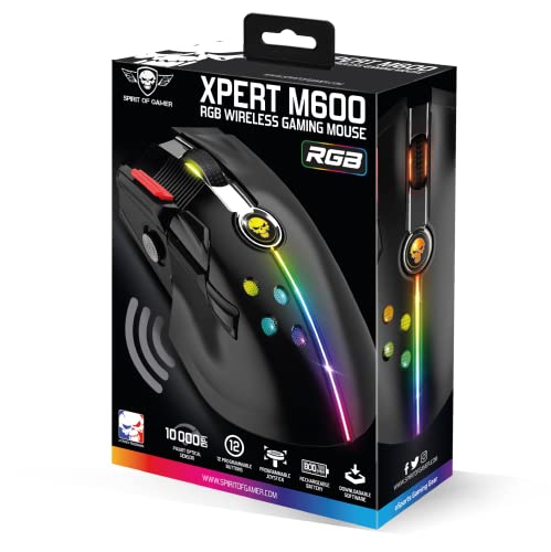 Spirit Of Gamer -XPERT M600- Mouse Gaming Wireless Ricaricabile - Mouse Gaming RGB - Sensore Ottico Alta Precisione 10000 DPI - 12 Pulsanti Programmabili Con 1 Rapid'Fire - Joystick 4 Funzioni