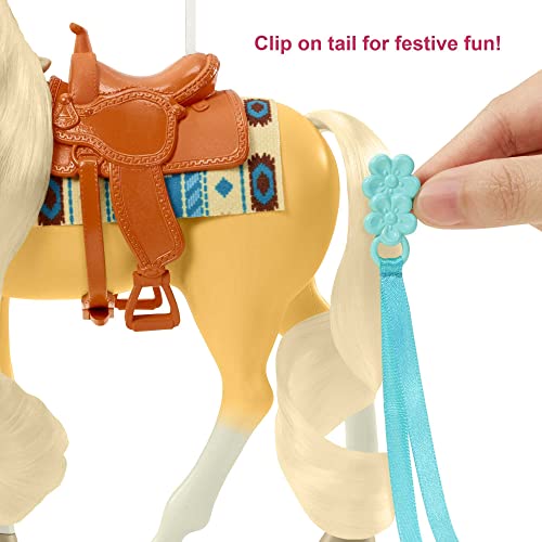 Con una criniera e una coda lunghe e splendide, questo Cavallo Deluxe Chica Linda di Spirit Festival a Miradero include un personaggio (20,32 cm) con criniera e coda lunghe e splendide e una sella con clip (per agganciare una bambola, in vendita separatamente).