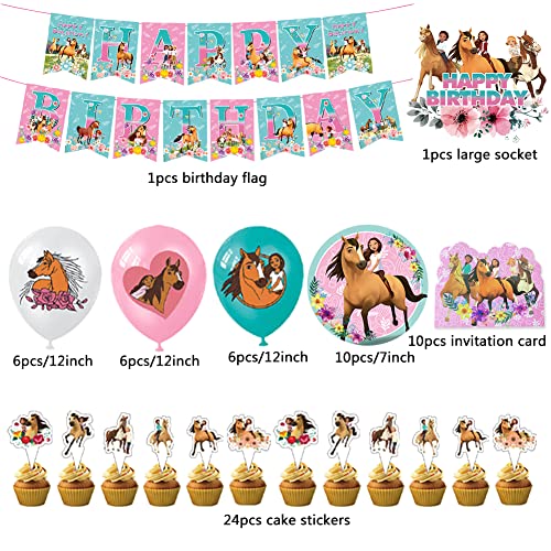Spirit Riding Free Horse Palloncini Decorazioni Feste UZSXHJ 65PCS Decorazioni di Compleanno,Include Palloncino in Lattice di Cavallo,Topper per Torta,Striscione,Piatto per La Cena,Biglietto D'invito