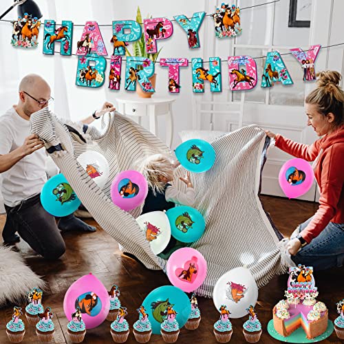 36 pcs Spirit-Stallion Festa Compleanno Kit, Decorazioni per Feste di Compleanno di Cavalli, Cavallo Topper per Torta Compleanno Banner Palloncini in Lattice, per Baby Shower, Festa Compleanno