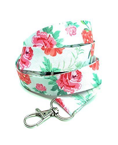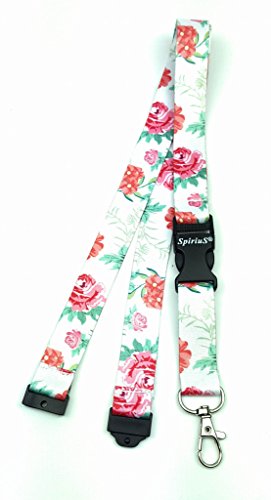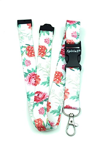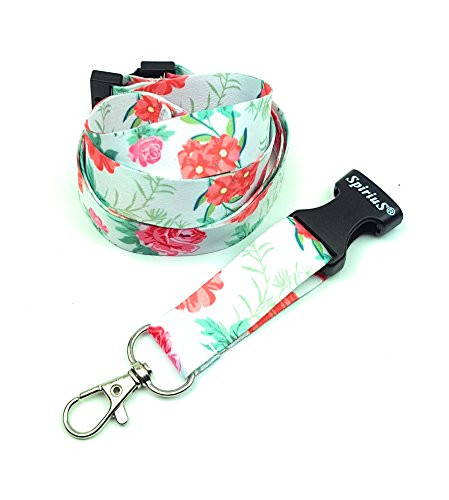 SpiriuS - Cordino da collo con clip in metallo e chiusura a cerniera, impermeabile, con chiusura a cerniera, motivo floreale, colore: rosso e verde