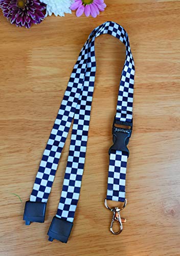 SPIRIUS - Cordino da collo staccabile con clip di sicurezza per telefono, badge, portachiavi white black squares